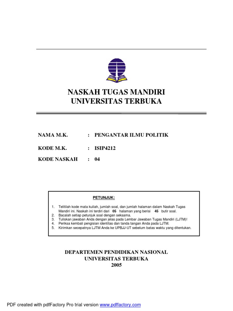 Https Ocw Ui Ac Id Mod Resource View Php Id 5 from Soal latihan mandiri pengantar ilmu politik isip4212. Pada postingan kami sebelumnya kami sudah berbagi soal ut ilmu pemerintahan semester 2 yaitu soal ujian ut ilmu pemerintahan isip4110 pengantar sosiologi yang juga. Soal ujian ut ilmu hukum semester 1. Mkdu4109 ilmu sosial dan budaya dasar. Jika ingin melakukan cetak file dokumen, hubungi terlebih dahulu adminnyaa untuk mendapatkan password akses cetak dan edit file dokumen. Latihan soal pengantar ilmu hukum uts semester 1 universitas diponegoro posted on september 13 2012. Kameralistik sanggup dikatakan sebagai cikal bakal tumbuhnya ilmu pemerintahan, dengan alasan. Latihan soal uas ilmu hukum.