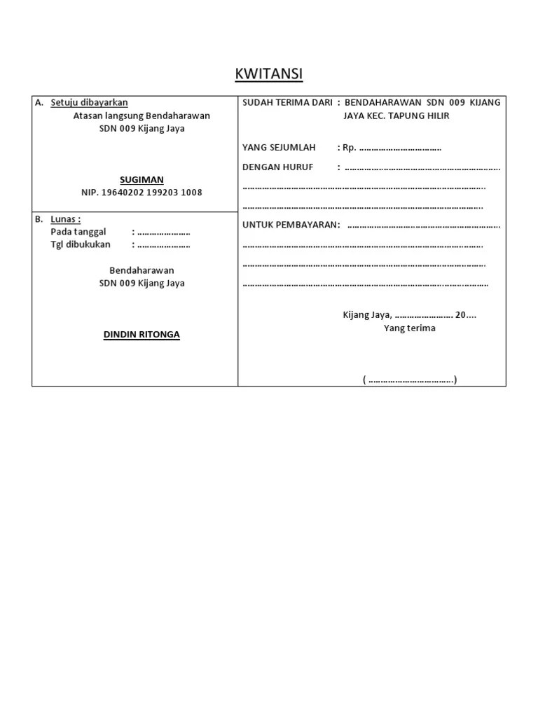 kwitansi otomatis bos sesuai juknis bos terbaru untuk laporan lpj written by agus prasetio sunday may 27 2018 4 comments dalam setiap laporan realisasi. Rp 8,635,000.00 contoh related papers. contoh bku bos 2021.contoh buku kas umum laporan bos format excel materi sekolah. contoh kwitansi laporan bos revisi sekolah. Download kwitansi otomatis bos terbaru kaskus.
